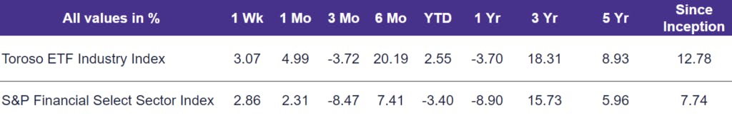 Keep tabs on your favorite ETFs with a personalized weekly tracker. Create a Watchlist now →