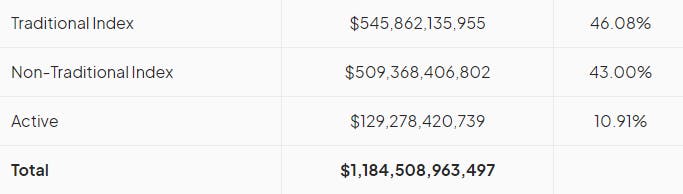Traditional ETFs dominated revenue with Active ETFs being just a sliver of the market. Just a year ago (3/6/2022), the chart looked very different: