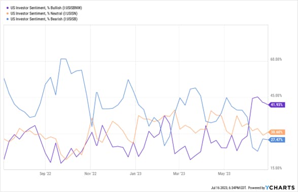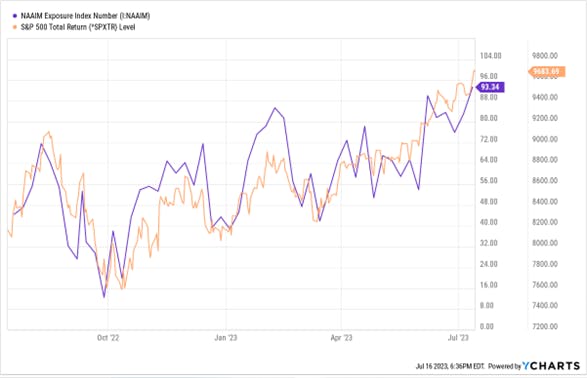 The strong performance of US equities has also resulted in a change in both outlook and asset allocation among active portfolio managers. In looking at the National Association of Active Investment Managers Index, which represents the average exposure to US Equity markets by active portfolio managers, equity exposure has jumped above 90%; this is the highest exposure since November 2021. The AAII Sentiment Survey also shows that 41% of investors surveyed had a bullish outlook that stock prices will rise over the next six months. This high degree of optimism is a marked change from the bearish sentiment that existed among investors for the preceding months.