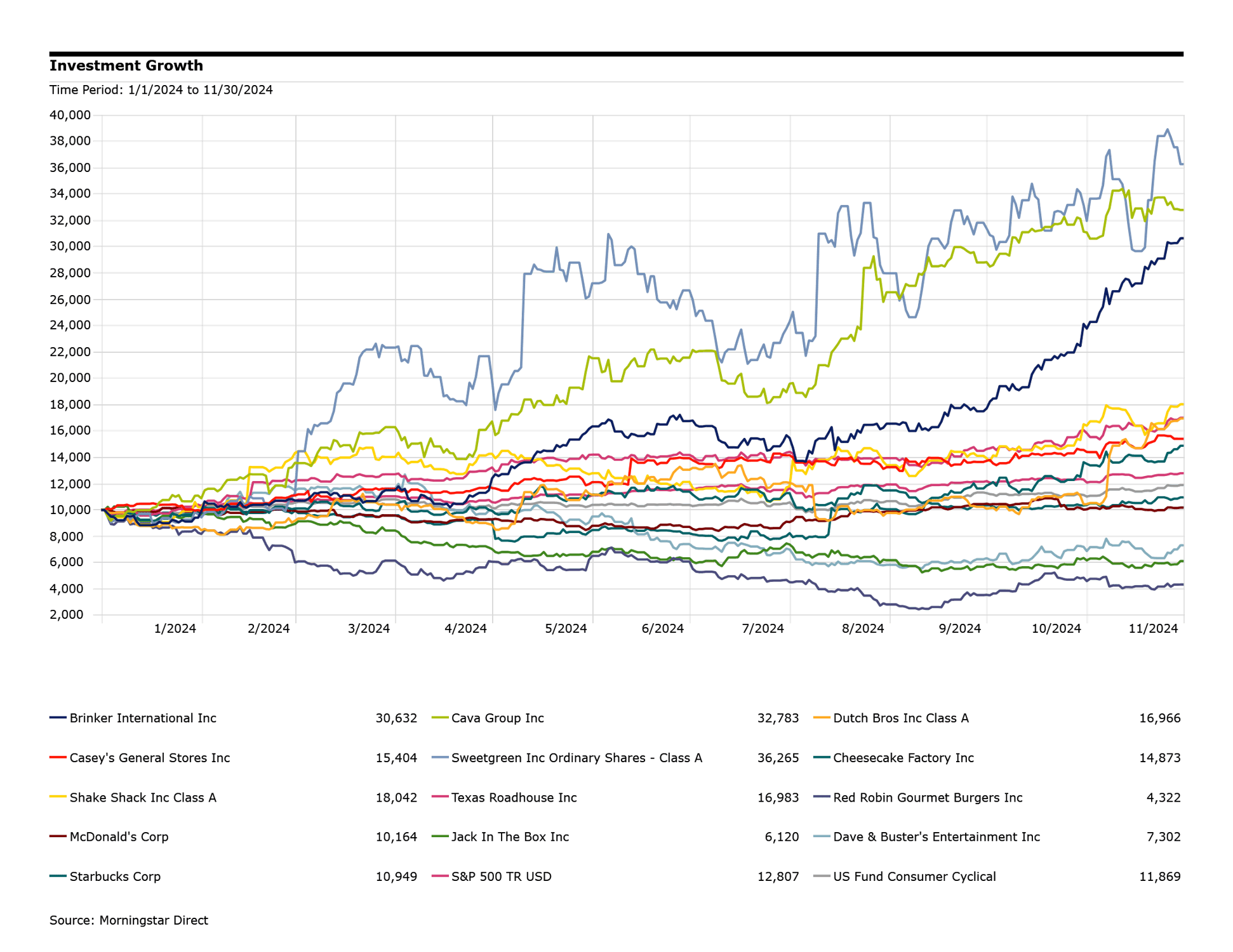 This shift is mirrored in the broader restaurant market, where some establishments are outperforming in the S&P 500 and Consumer Cyclicals, while others lag behind—underscoring the importance of careful stock selection in the restaurant sector.