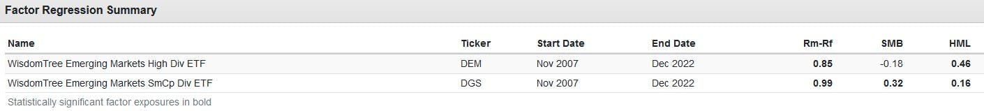 Compared to the overall emerging market blended cap indexes, DEM offers palpable value exposure. Notable, this combination makes DGS a possible candidate for an emerging market small-cap value ETF, an offering currently missing in the U.S. ETF industry.
