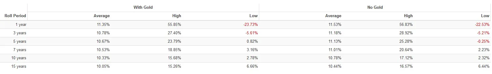 The notional exposure of this fund is therefore 90% stocks, and 90% gold, for a total 1.8x accounting leverage. This is still risky, but not excessively so. Overall, I consider it a novel and sustainable way to hold a gold allocation long-term, while still investing in enough stocks. I explored this concept earlier in an article on return stacking, so give it a read if you're curious about how this works.