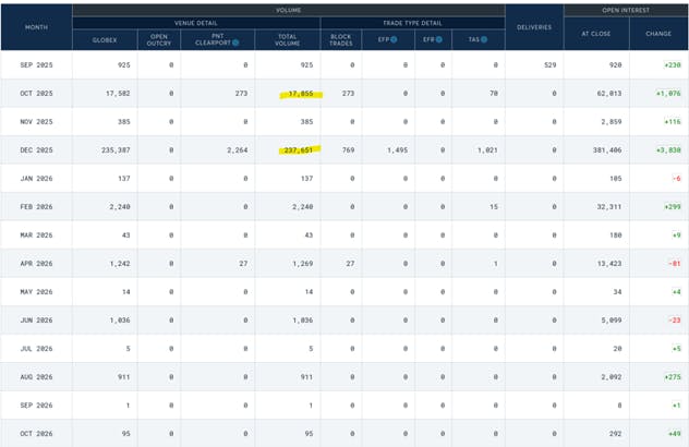 Futures are available across multiple monthly expiries, with the December contract currently the most liquid.