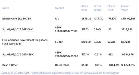 Defiance uses a different playbook with SPYT, which holds a low-cost S&P 500 tracker such as IVV and sells next-expiry call credit spreads⁹ on the SPX index.