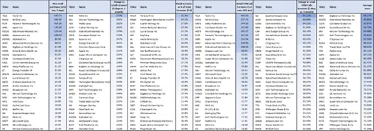 Turnover data (see below) reflects the same pattern, showing how heavy retail participation drives volumes and volatility in these names.