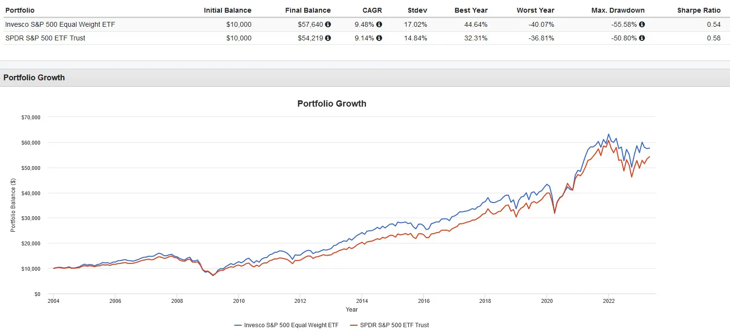 Over a longer period, I do expect RSP to outperform slightly (gross of fees) due to its higher size and value exposure, both of which are factors that have historically contributed to market outperformance. The worry is that the 0.35% expense ratio might eat up any alpha generated.