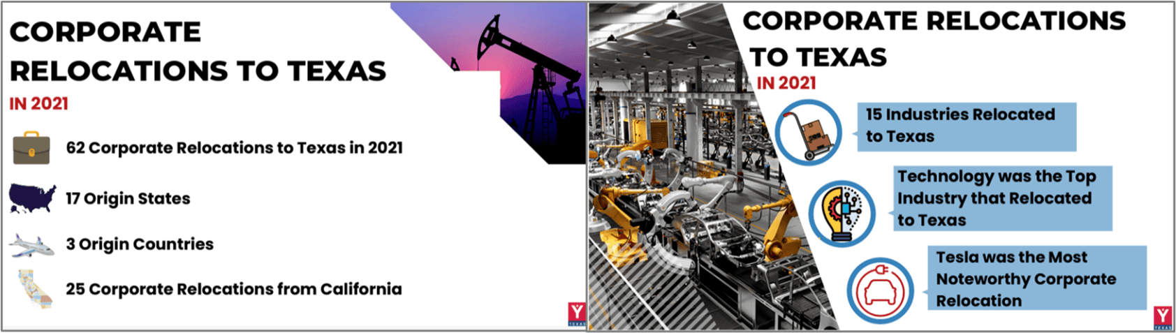 As data from the 2022 YTexas Relocation Tracker report shows, in 2021, 62 corporations relocated their headquarters to Texas. These companies relocated from 17 states and three countries. For investors interested in the Texas Equity Index ETF, the success of the mandate is highly predicated on the economic, technical and societal developments currently occurring within the state of Texas, continuing into the future in a progressive manner, so that firms will continue to move there or that new enterprises will arise over time and achieve industry leadership.