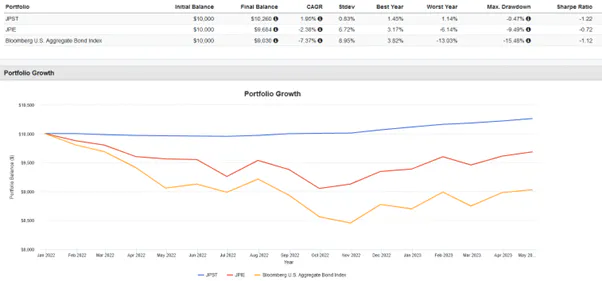 JPST and JPIE can actively manage their credit and duration exposure, offering a more adaptive approach to market shifts. For example, when credit conditions deteriorate or interest rates rise, these funds can adjust their holdings dynamically to minimize potential losses and capitalize on new opportunities.