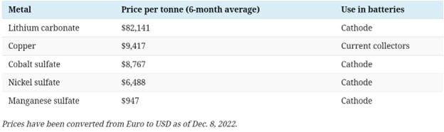 As outlined by data from the Institute of Rare Earths and Strategic Metals, the cost of battery metals is increasing, due to the growing demand for electric vehicles and energy storage technologies. As detailed in the table below, lithium carbonate, one of the most refined forms of lithium used in batteries, now costs approximately $80,000 per tonne.