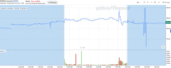 Check out the MoneyShow Chart of the Day, which shows trading in Nvidia stock over the past two days. Huang’s comments at the “Super Bowl of AI” conference gave the stock a boost…but it quickly petered out.