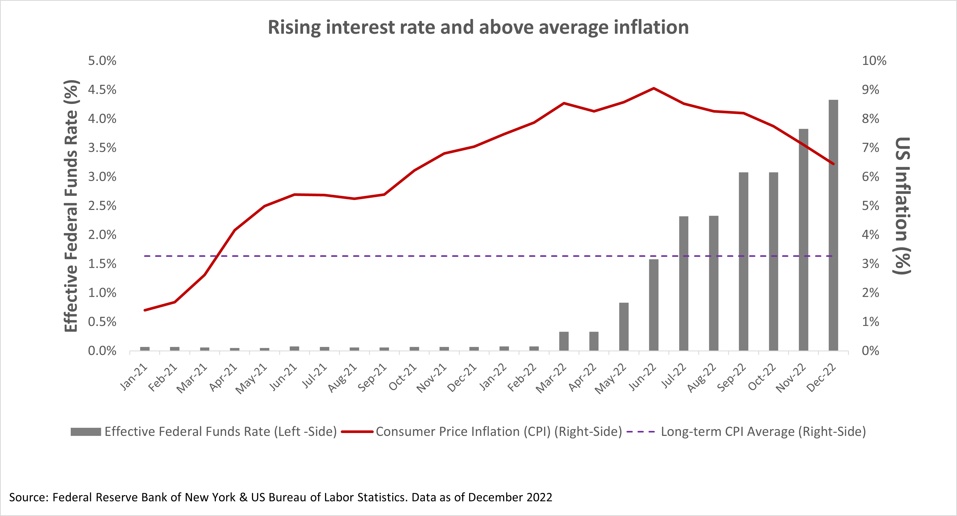 Inflation was the overarching theme of 2022 and will remain a focal concern for central bankers in 2023. In the US, policymakers have forecasted that their short-term rates will reach a range of 5% to 5.25% by the end of 2023. So, what does this mean? In a rising rate environment, where the cost of money (i.e., interest) is higher, we can reasonably expect large- and small-scale businesses to be more judicious as to how they raise and use capital. Furthermore, many firms may consider cutting back on expenses as a means of managing their balance sheet.