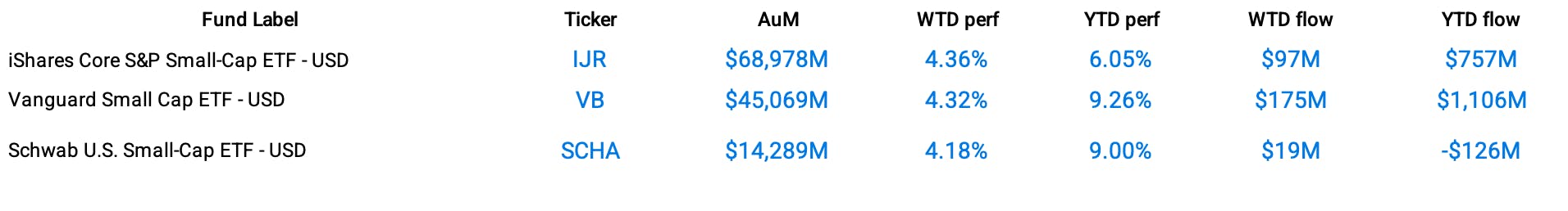 Keep tabs on your favorite ETFs with a personalized weekly tracker. Create a Watchlist now →