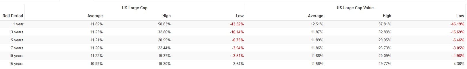 That being said, there have been years where the value risk premium returned negative. These were periods of time when growth stocks beat their value counterparts. This is to be expected. Even the market risk premium has returned negative on occasion, as evidenced by periods when bonds beat stocks.